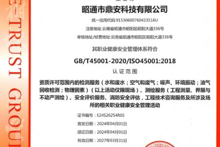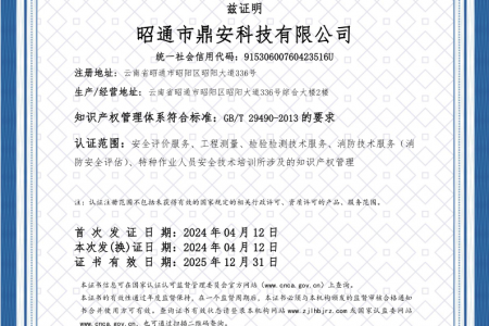 2003年11月10日,昭通市鼎安科技有限公司成立,初始主要從事第三方安全工程技術(shù)服務(wù),經(jīng)多年運(yùn)營,發(fā)展為多專業(yè)綜合科技平臺,為社會提供多種專業(yè)技術(shù)服務(wù)工作。 現(xiàn)公司注冊資金為1200萬元,公司法定代表人:毛衛(wèi)旭。公司主要業(yè)務(wù):安全評價、安全標(biāo)準(zhǔn)化評審、安全工程技術(shù)服務(wù);環(huán)境監(jiān)測、職業(yè)衛(wèi)生檢測、檢驗(yàn);法律訴訟及非訴訟服務(wù);司法鑒定、固定資產(chǎn)投資項(xiàng)目節(jié)能服務(wù);工程咨詢;工程測量測繪;安全教育培訓(xùn)等。是安全生產(chǎn)服務(wù)、安全教育培訓(xùn)機(jī)構(gòu),也是環(huán)境監(jiān)測和職業(yè)衛(wèi)生服務(wù)機(jī)構(gòu),同時也是綜合的檢測檢驗(yàn)、綜合科技平臺服務(wù)機(jī)構(gòu)。多年來為公、檢、法、司、軍、警、海關(guān)、仲裁、安監(jiān)、工礦商貿(mào)企業(yè)、社會團(tuán)體及個人提供多專業(yè)技術(shù)服務(wù)。
